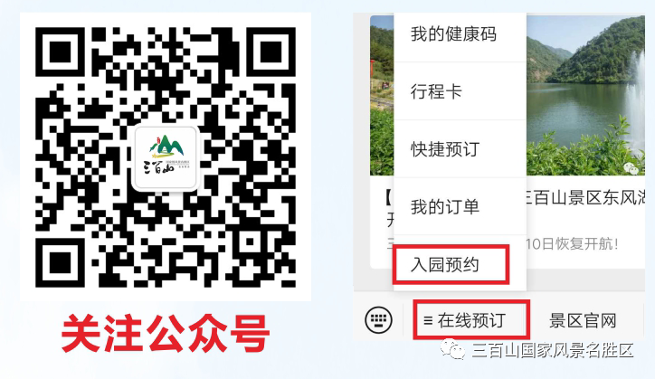 第一步:扫码关注下方:三百山国家风景名胜区官方微信公众号;