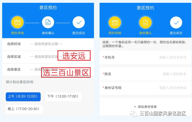 进入景区预约界面,点立即预约,然后填写预约信息,预约成功后给工作人员进行核销。