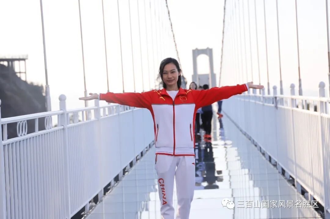 在玻璃天桥,奥运冠军洗尽一路辛劳,露出率真本质,在景区内尽情游玩、摆拍,感受天空之境。