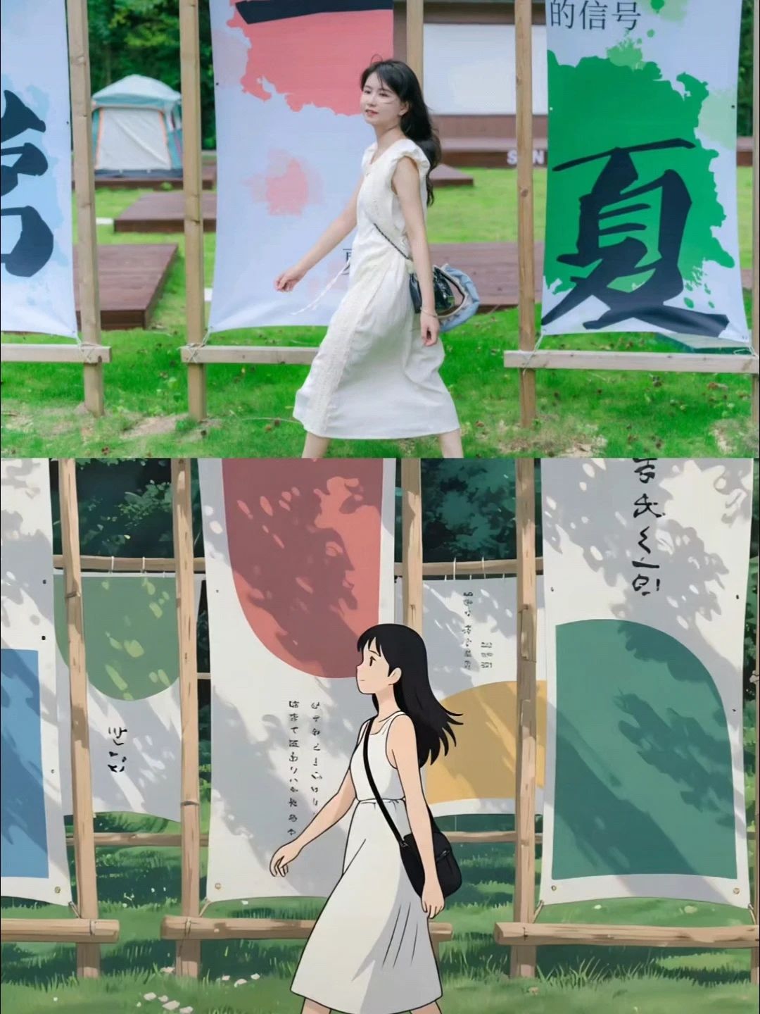 The sister in the white dress directly transformed into the female lead of the anime!
