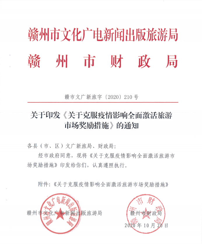 赣州市《关于克服疫情影响全面激活旅游市场奖励措施》出炉了!