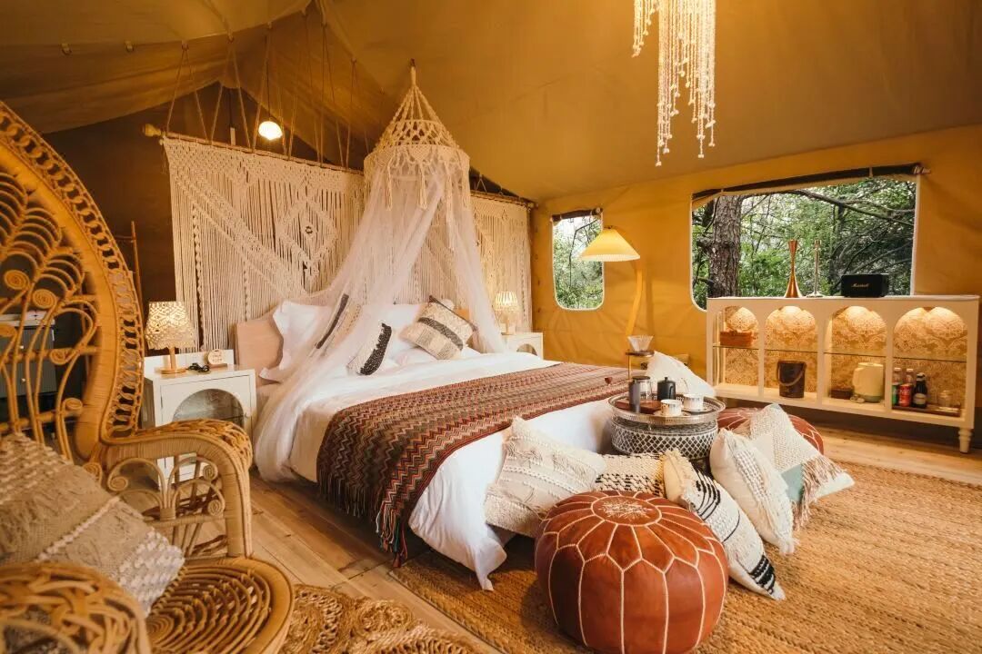 삼백산국가 5a 관광지의 중심부에 위치하여있으며 산을 등지고 건설하였으며 삼림을 등지고 군봉을 마주하고 있으며 주위는 운무에 둘러싸여있고 첩첩한 산봉우리들이 구름속을 방불케한다.광원모색과 품질캠핑 브랜드 씨와일드 (seewild)와 제휴하여 미국 하버드대학교 조경디자인학과 교수를 초빙하여 전체적인 계획과 설계를 진행함으로써 기존의 지형과 지역의 생태환경을 보호하는 기초에서 편안하고 캐주얼한 야외 휴양지를 구축하였습니다.19개의 다양한 스타일의 야영 텐트가 숲 사이에 들쑥날쑥 놓여 있다.각 텐트에는 실외전망욕조, 실내독립욕조, 마샬사운드, 삼림스파, 테라스천장침대, 토토지능변기등 고급호텔 표준침품욕조가 있다.