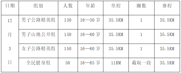 参赛选手必须佩戴中国自行车运动协会认可的安全头盔、必须佩戴大会统一发放的号码布、号码牌,否则不予参赛;凡省级专业队自行车运动员和中国自行车运动协会、UCI注册的职业现役运动员不得报名参加比赛;竞赛器材、服装、车辆自备,各组选手的交通、饮食及相关费用自理;