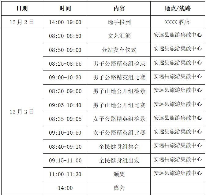 地点:酒店(请参赛选手加入赛事微信群,以便及时收到赛事相关信息)时间表