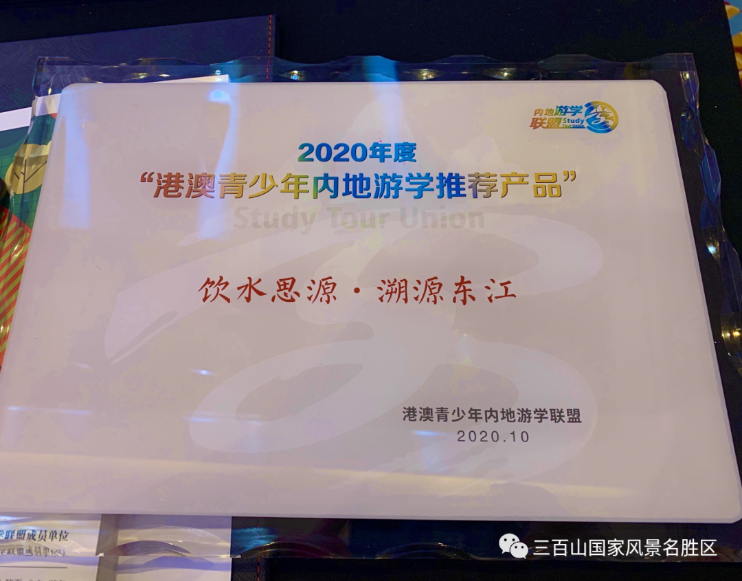 其中江西安远·三百山景区“饮水思源·溯源东江”旅游目的地,被授予“2020年度港澳青少年内地游学推荐产品”,安远旅发三百山景区经营管理有限公司杜芳珍副经理在大会上进行了推介。