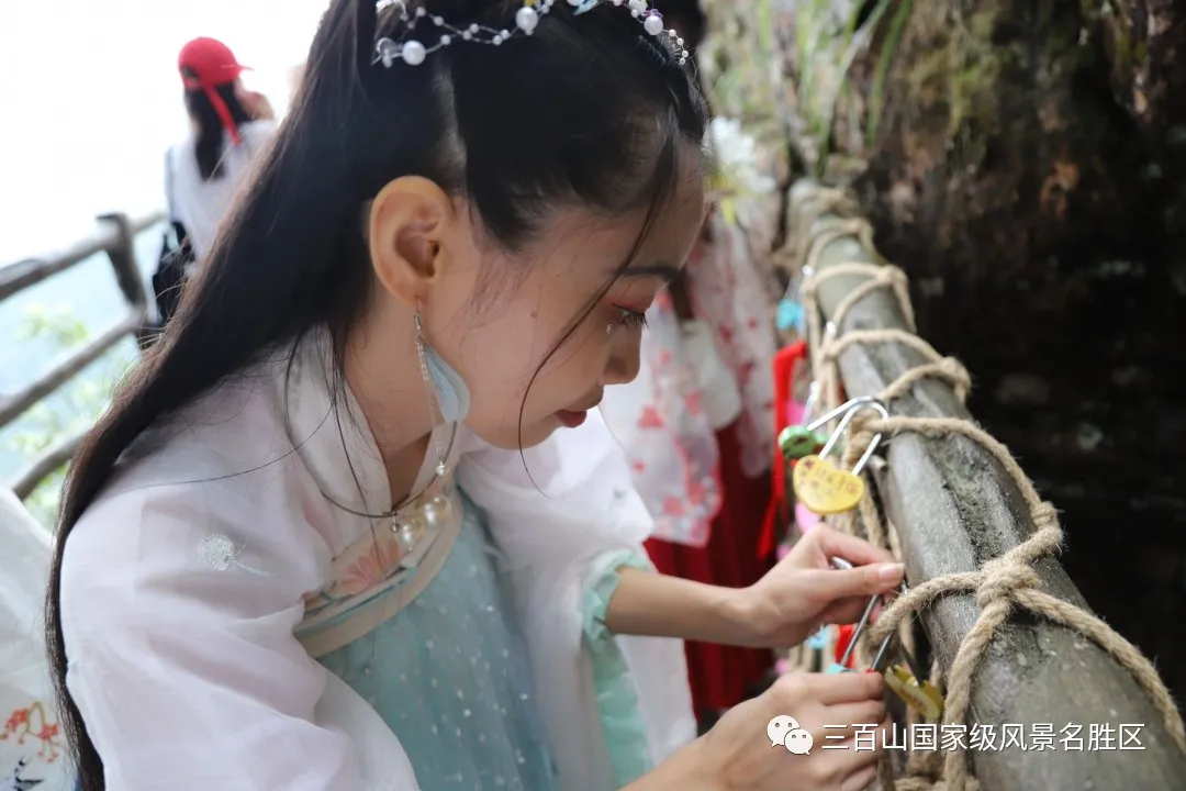 和你一起携手走过山路的蜿蜒,穿过丛林的崎岖,在山上漫云栈道(百年好合)亲手挂上同心锁和祈福牌,留下我们一生的誓言,锁住一生的婚缘。