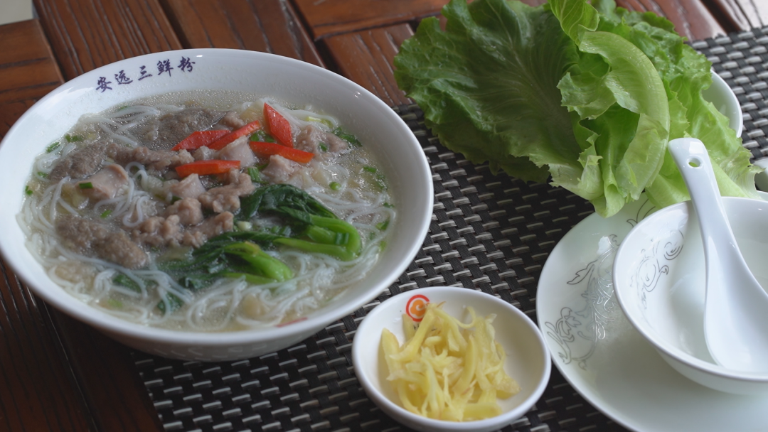 “安远三鲜粉”最为出名、享誉四方。据说当年唐伯虎在安远吃了“三鲜粉”后,连赞了三个“鲜”。