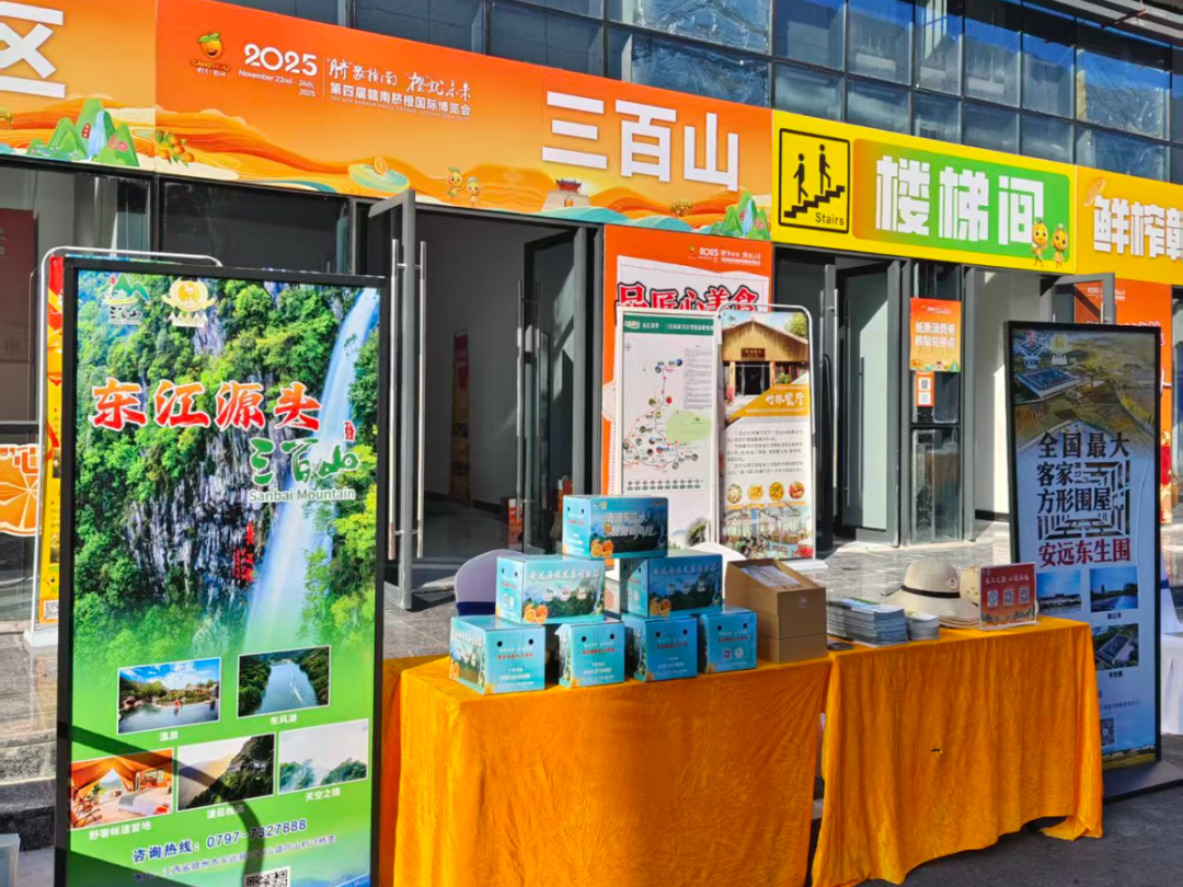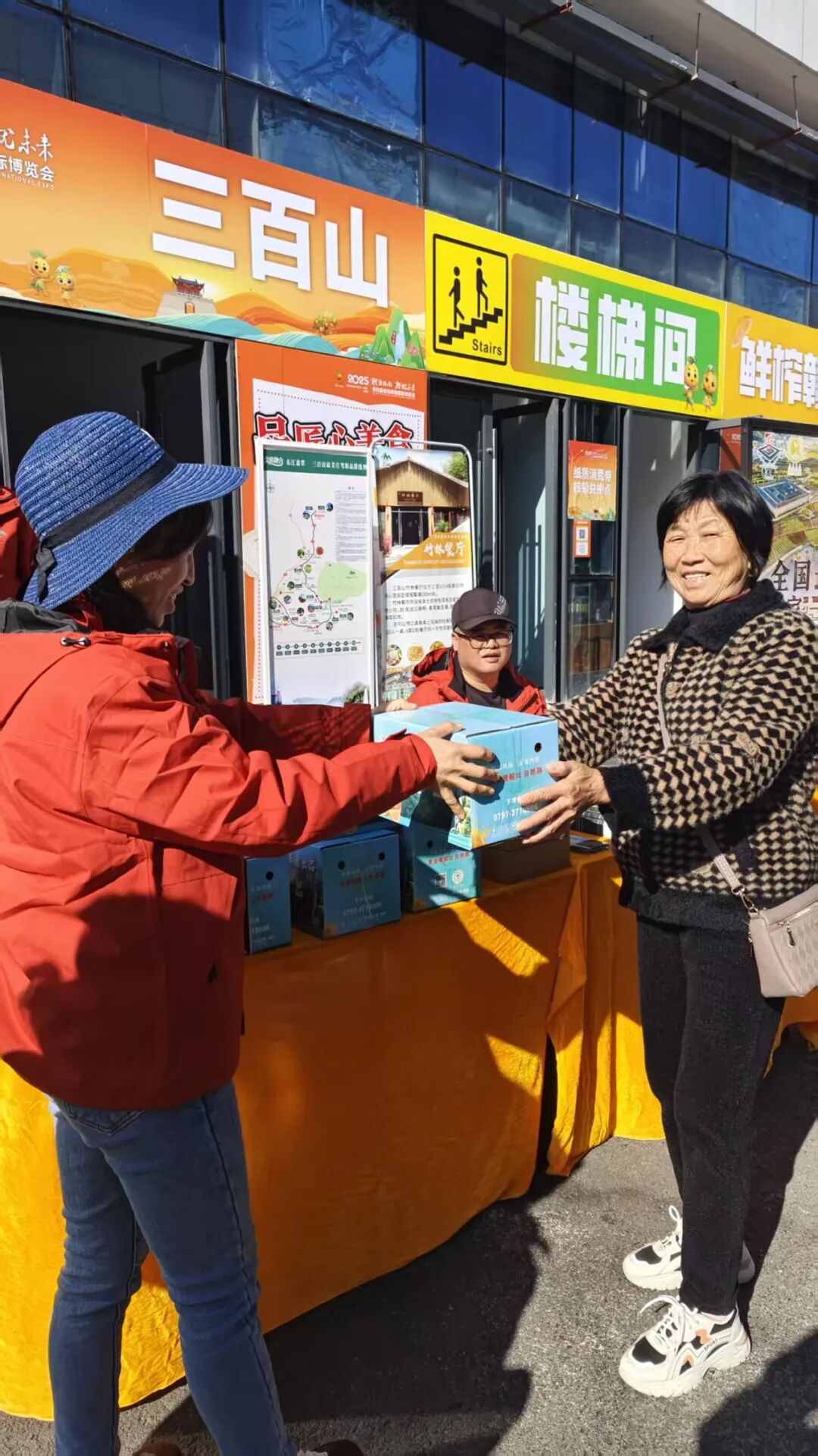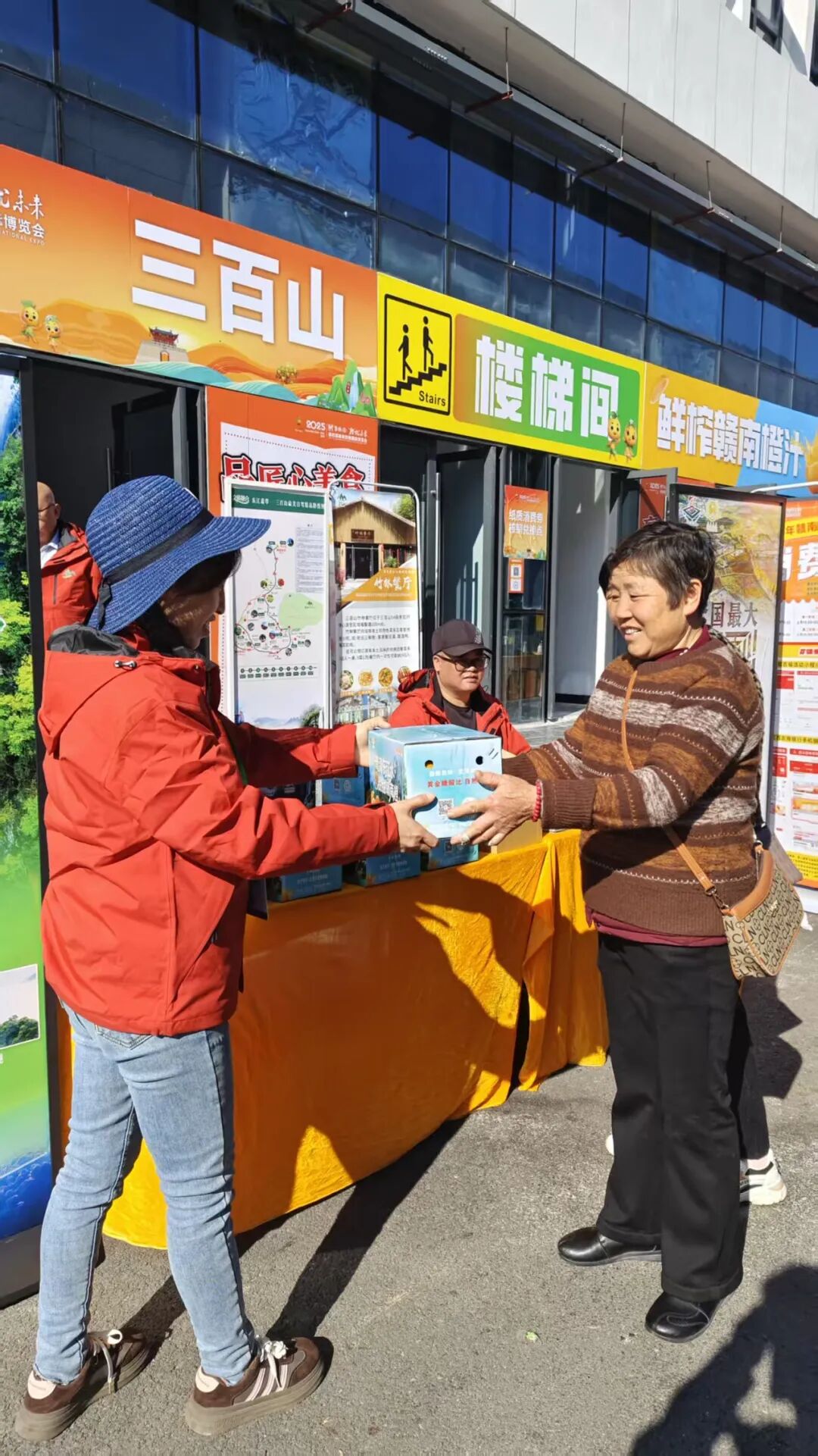 找到三百山的展区,寻找工作人员兑换领取脐橙。